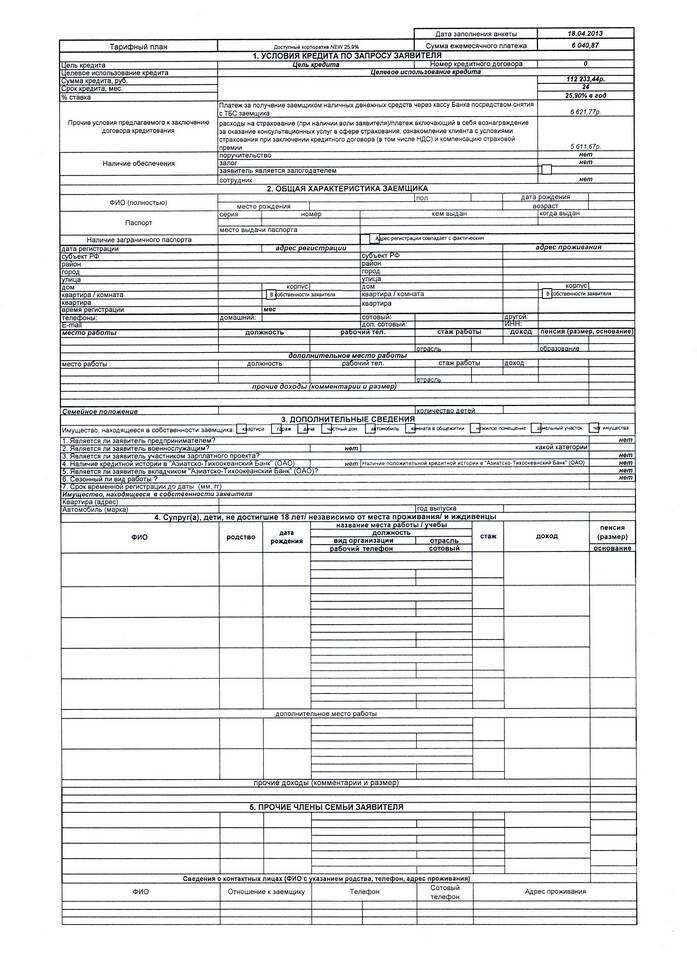 - Паспорт заемщика