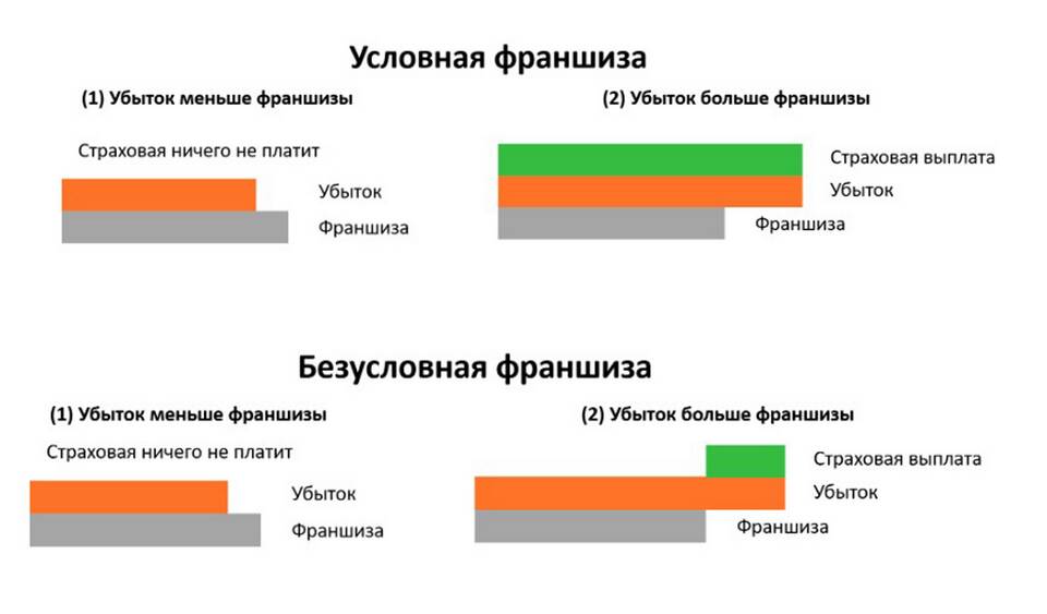 Безусловная | Выплата уменьшается на сумму франшизы всегда | Любые страховые случаи |