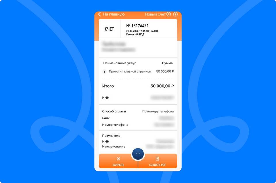 Безналичный перевод | На банковскую карту или счет | Автоматическая регистрация чека |