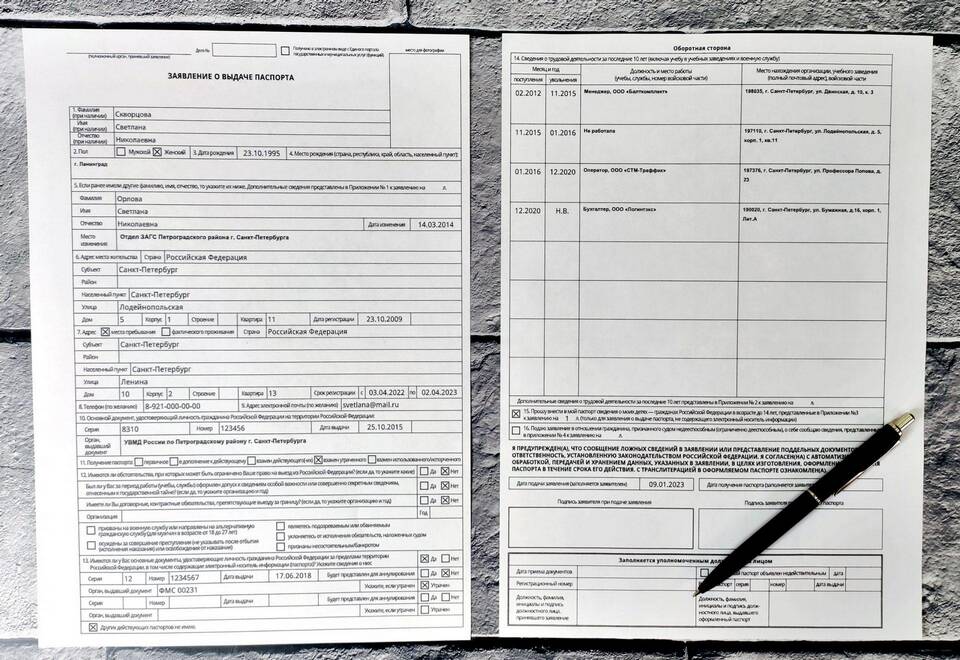 - Указание номера бланка вместо номера паспорта