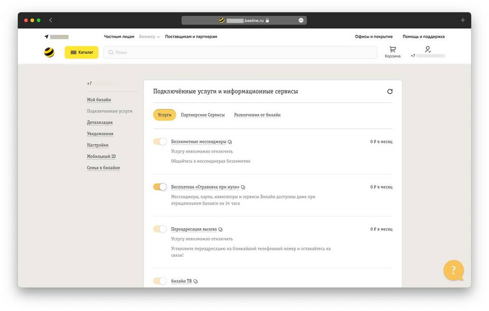 Рекомендуется заранее проверять условия продления подключенных услуг в личном кабинете.